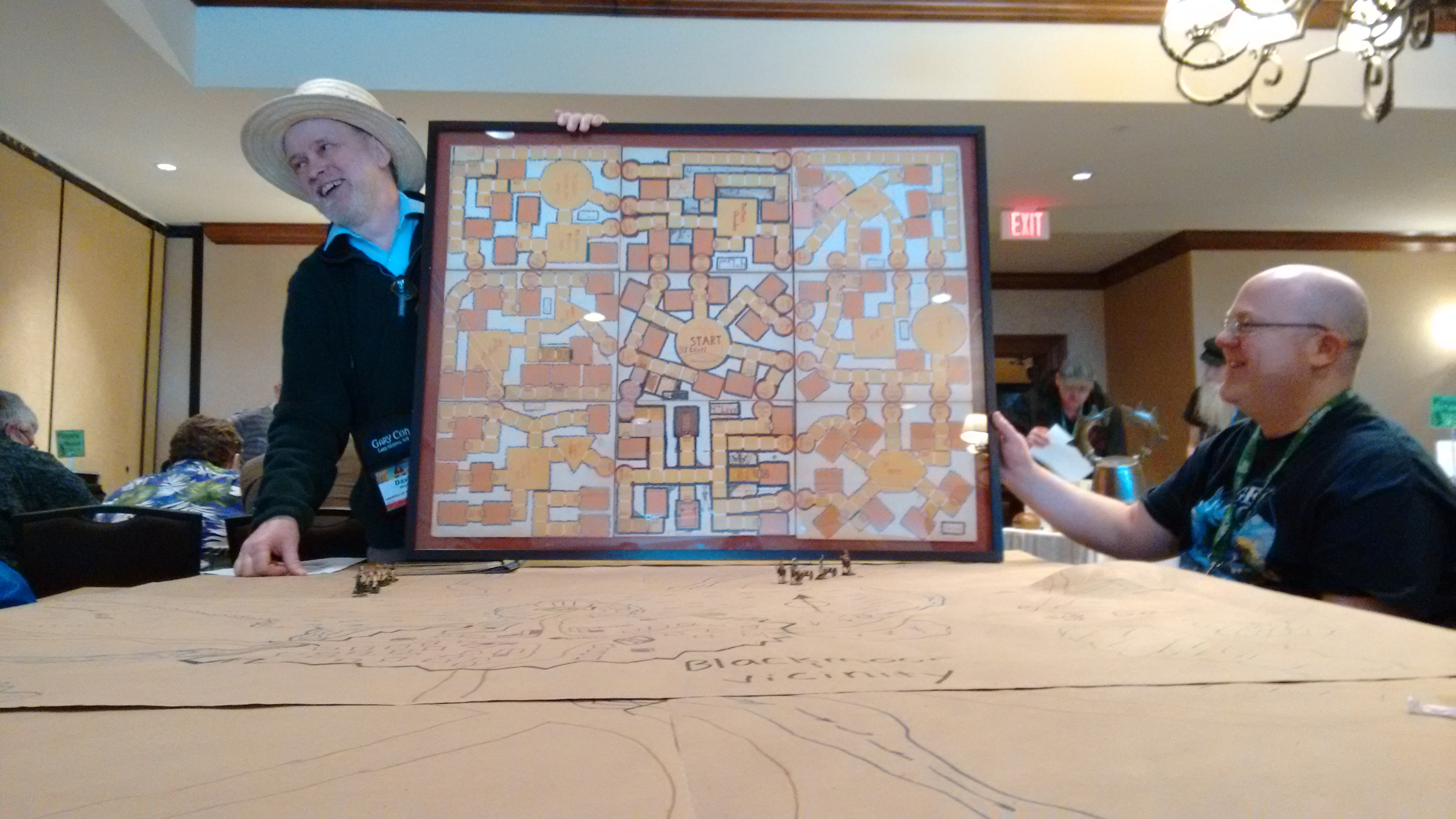 David Megarry showing us his original prototype board for Dungeon. Afterwards we played the game using 1st edition prints of the game. My Wizard lost badly. #garycon #gcix